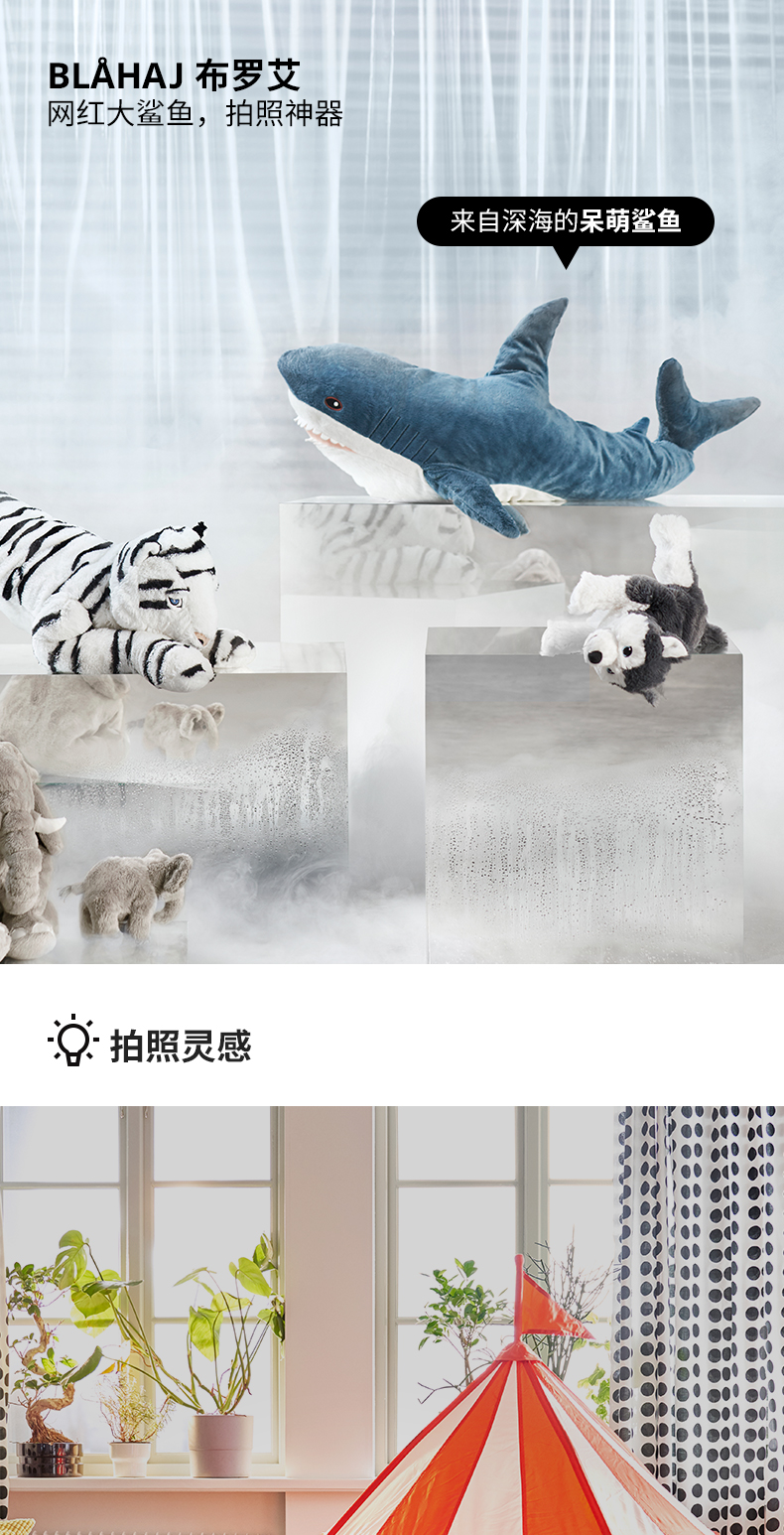 IKEA宜家BLAHAJ布罗艾鲨鱼抱枕毛绒玩具公仔网红幼鲨新品可爱玩偶