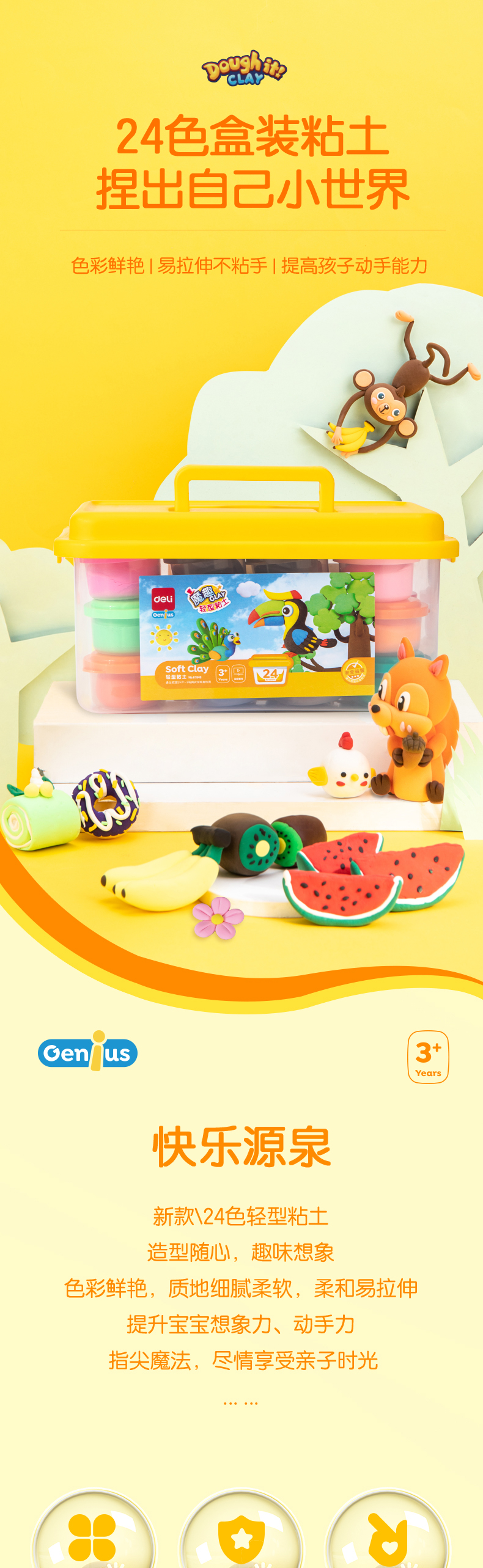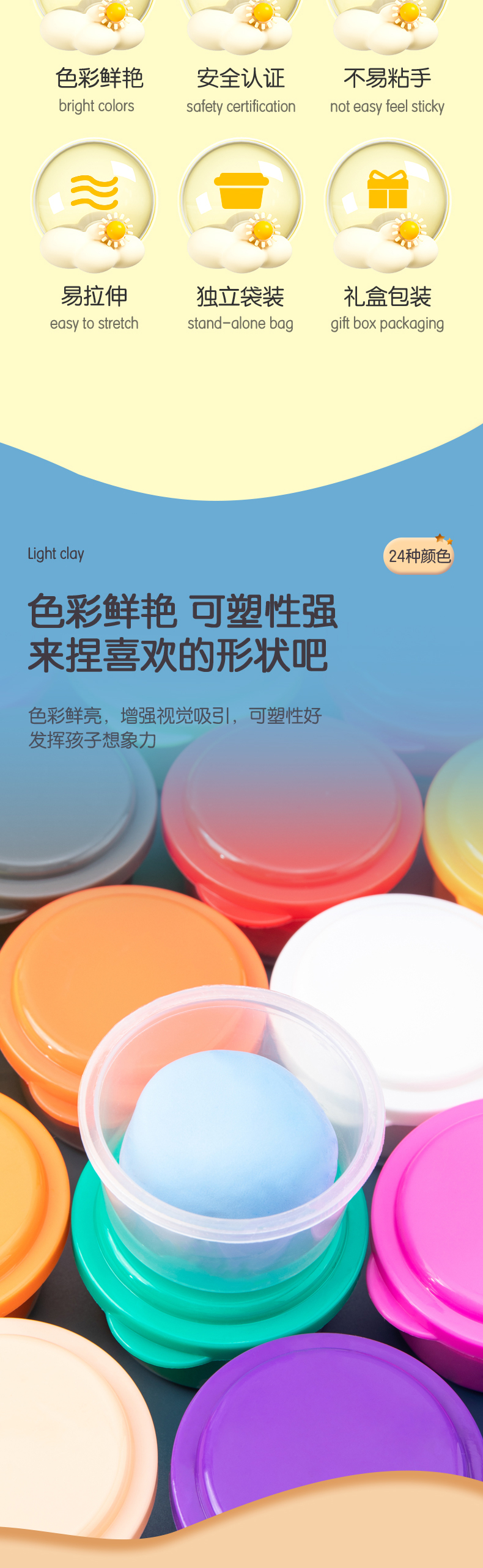 得力儿童橡皮泥超轻粘土彩泥手工轻黏土幼儿宝宝diy玩具24色12色